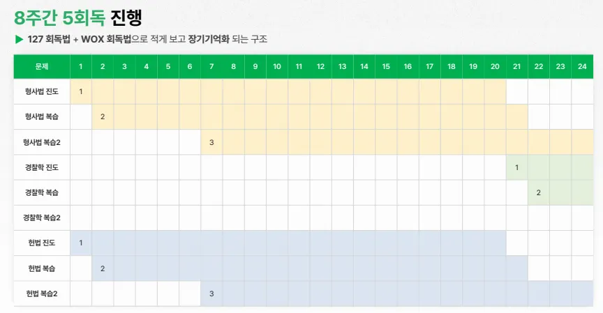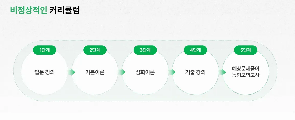 입문 강의 → 기본이론 → 심화이론 → 기출강의 → 동형모의고사