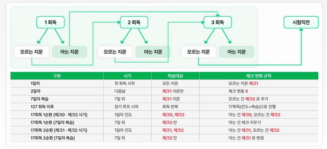 가장 효율적인 복습 주기 설정을 통해, 적게 보고도 기억에 남도록 설정
